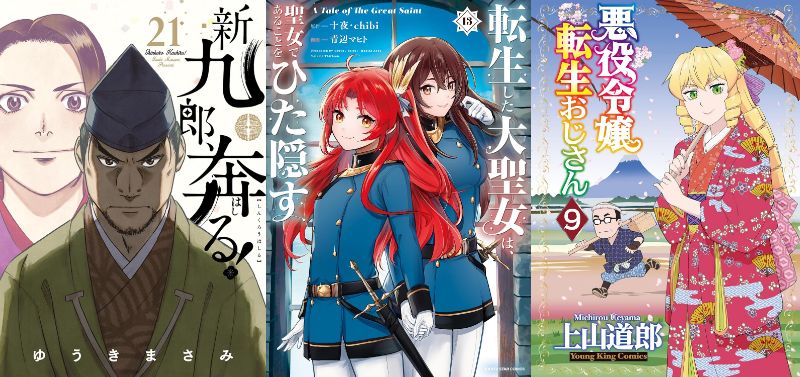 またヤングキングアワーズGHからは、悪役令嬢コメディ漫画『悪役令嬢転生おじさん』の9巻が発売。