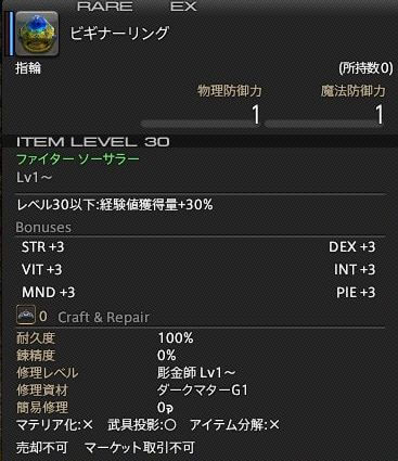 【FF14】初心者の館報酬「ビギナーリング」が優秀!経験値+30%と全ステータス+3!
