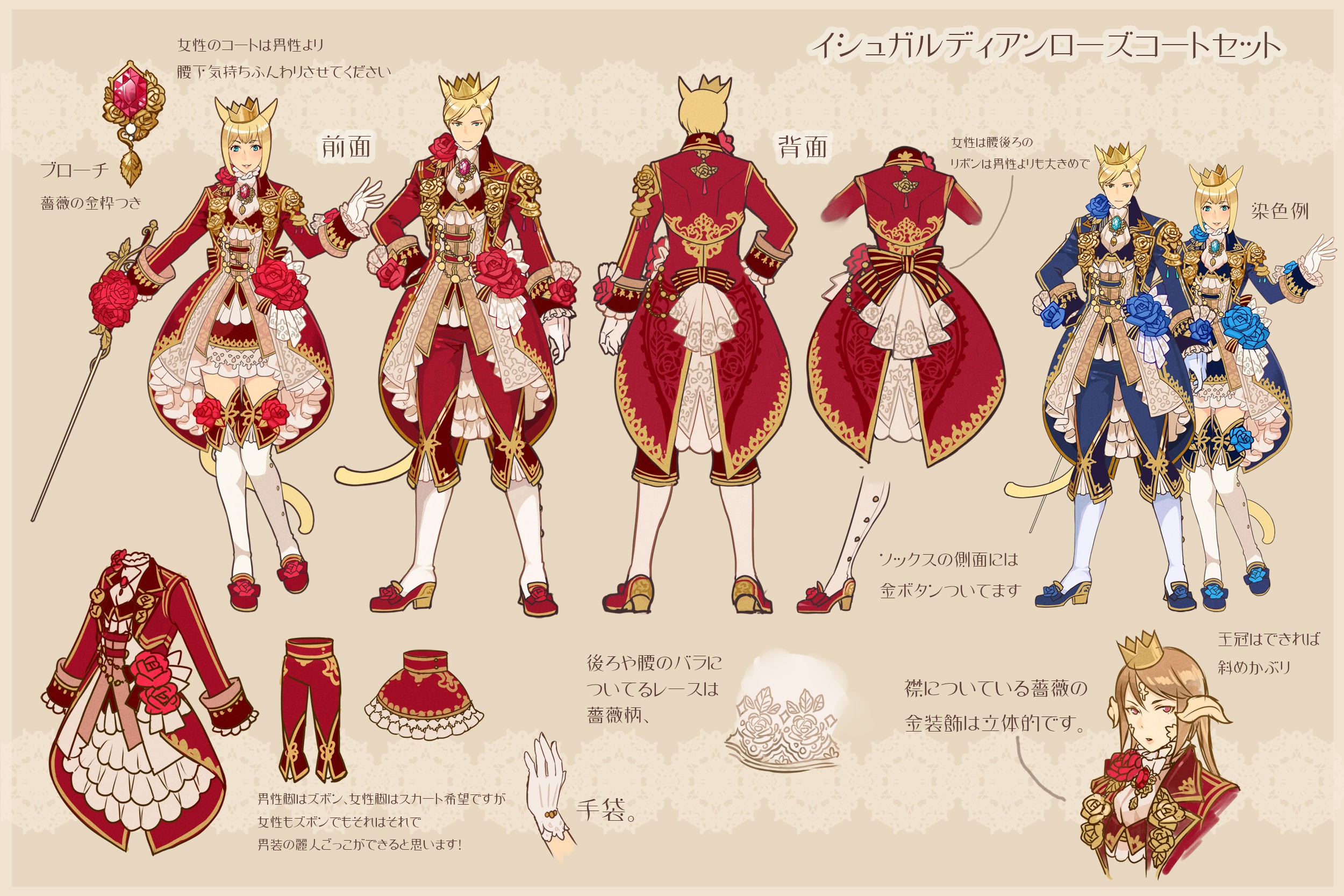 赤と青のローズコート装備 どっかでみたことあるなとおもったらモンハンのテオとナナだ