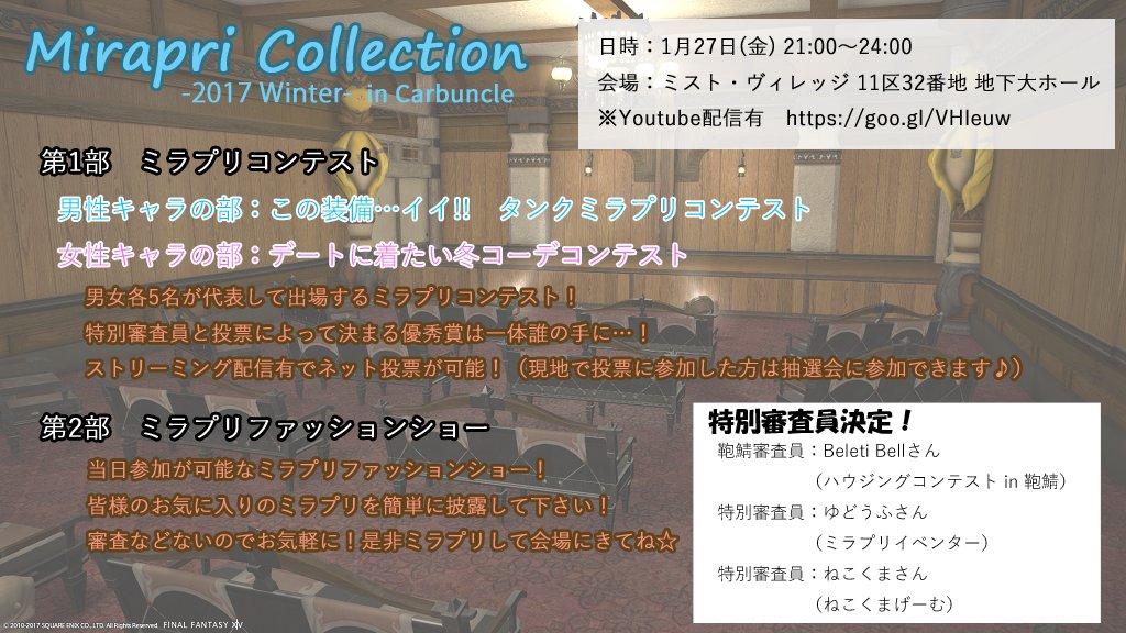 【FF14】ミラプリイベントに審査員として参加してみる! 「Mirapri Collection in Carbuncle 2017 – Winter -」を紹介