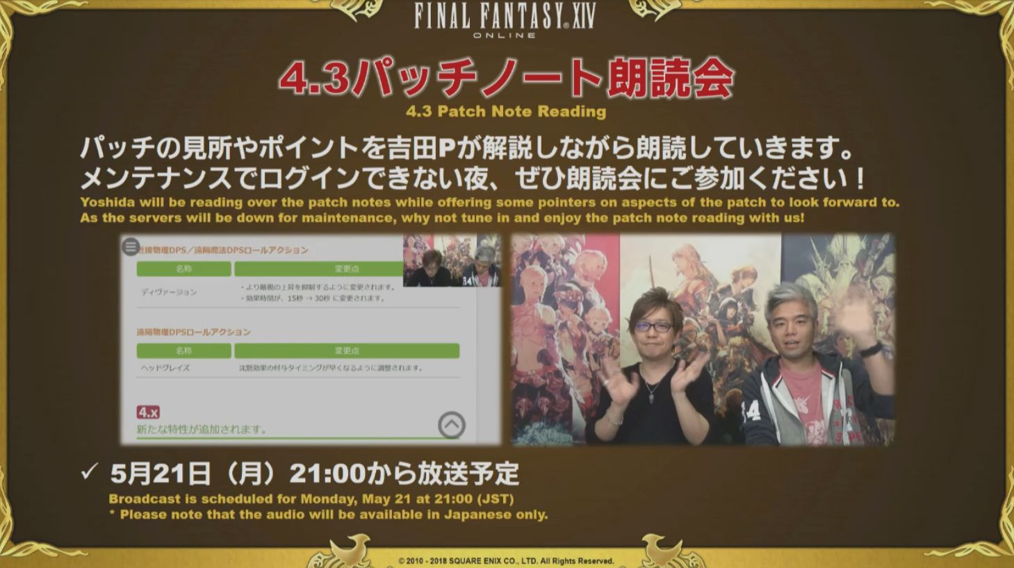 【FF14】「4.3パッチノート朗読会」は本日21時開始! メンテナンスは19時から
